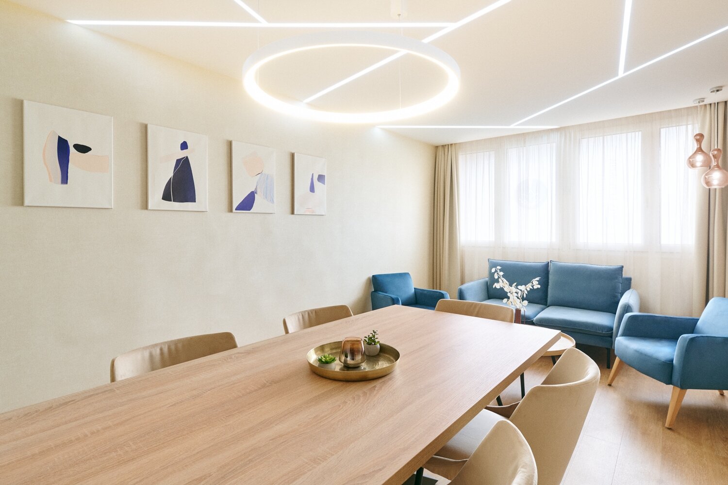 •  Schreibtisch mit Sessel, Rundtisch mit drei weiteren Sesseln, Billerbeck Bettwäschegarnitur, Minibar